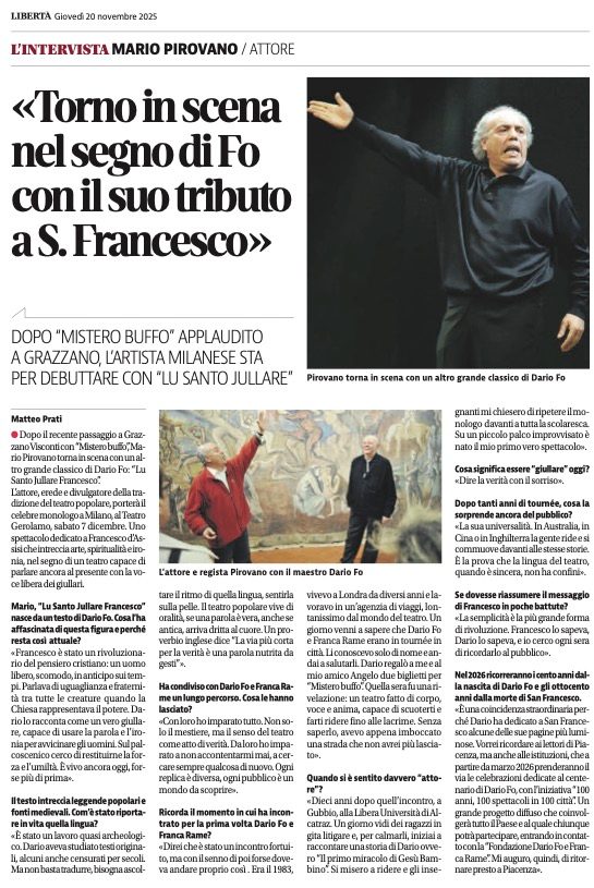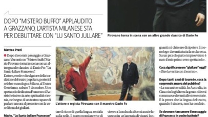 “Pirovano con la sua mimica straordinaria ed una gestualità fuori dal comune rappresenta il testo con passione, rendendo partecipe lo spettatore delle stesse emozioni suscitate dalla provocazione di Francesco.”