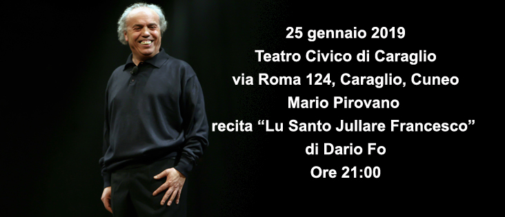 Mario Pirovano recita “Lu Santo Jullare Francesco” di Dario Fo all’interno dell’iniziativa “Il Teatro fa il suo giro”. Ore 21:00, Teatro Civico di Caraglio, via Roma 124, Caraglio, Cuneo.