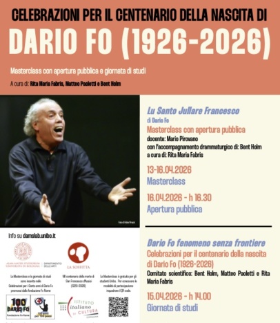 Lu Santo Jullare Francesco di Dario Fo e Franca Rame Masterclass con apertura pubblica Docente: Mario Pirovano con l'accompagnamento drammaturgico di: Bent Holm a cura di: Rita Maria Fabris Dal 13 al 16 aprile 2026…