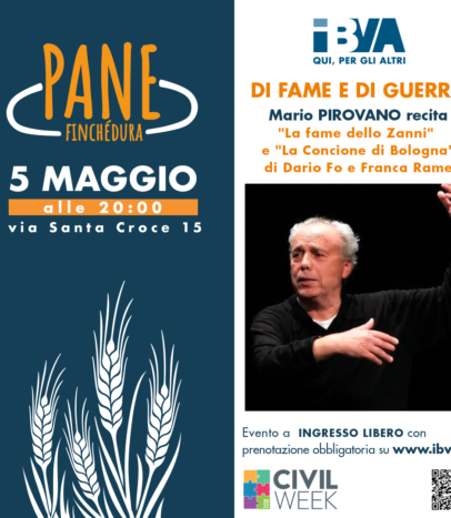 Il 5 Maggio, alle ore 20:00, in occasione di “Pane finché dura”, l’evento di Associazione IBVA dedicato al cibo più umile e nobile di tutti: il pane, Mario Pirovano recita due monologhi di Dario Fo…