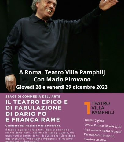 Il Teatro vivo di Dario Fo e Franca Rame, “gestualità, fisicità, vocalità”. Stage di Commedia Dell’Arte condotto da Mario Pirovano. Durata: 2 giorni Orario: Dalle 10:00 alle 17:30 (con un’ora e mezza di pausa pranzo)…
